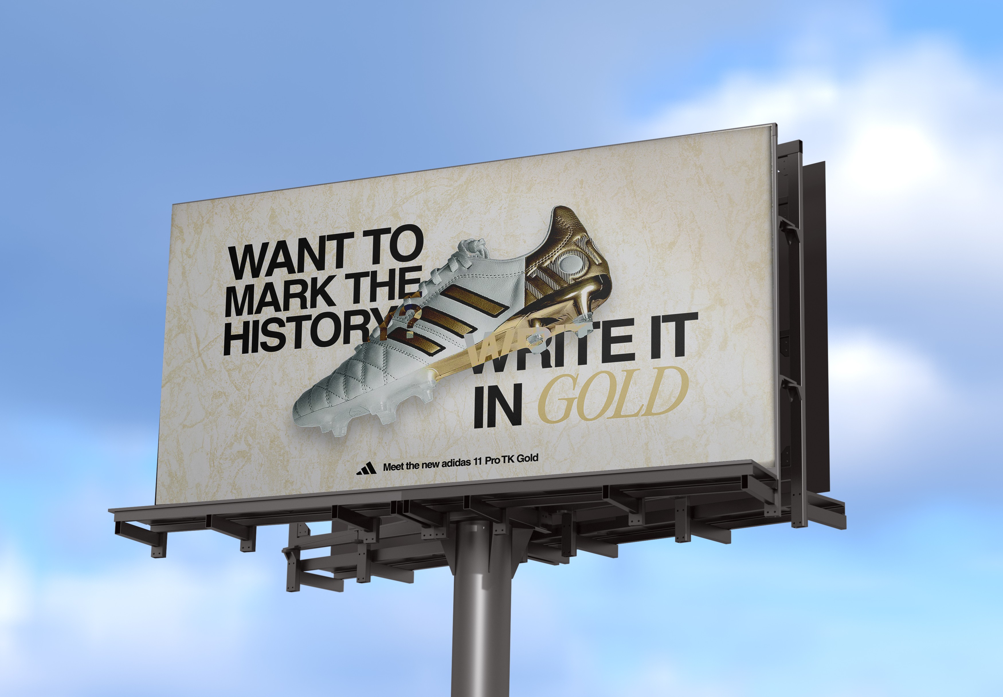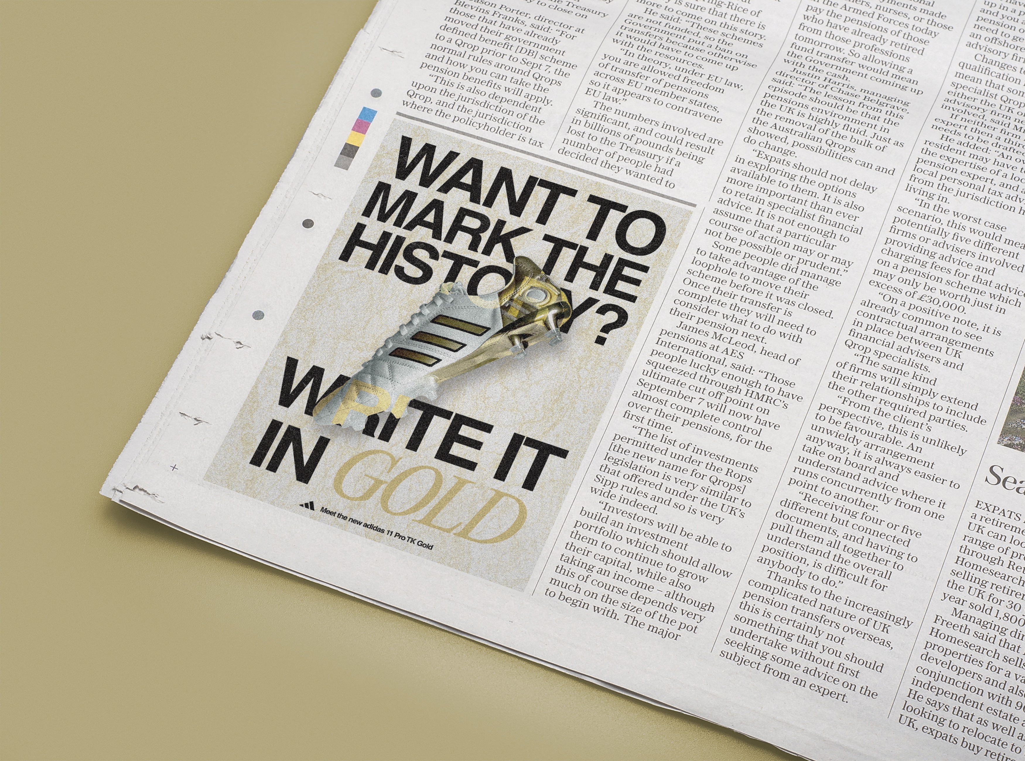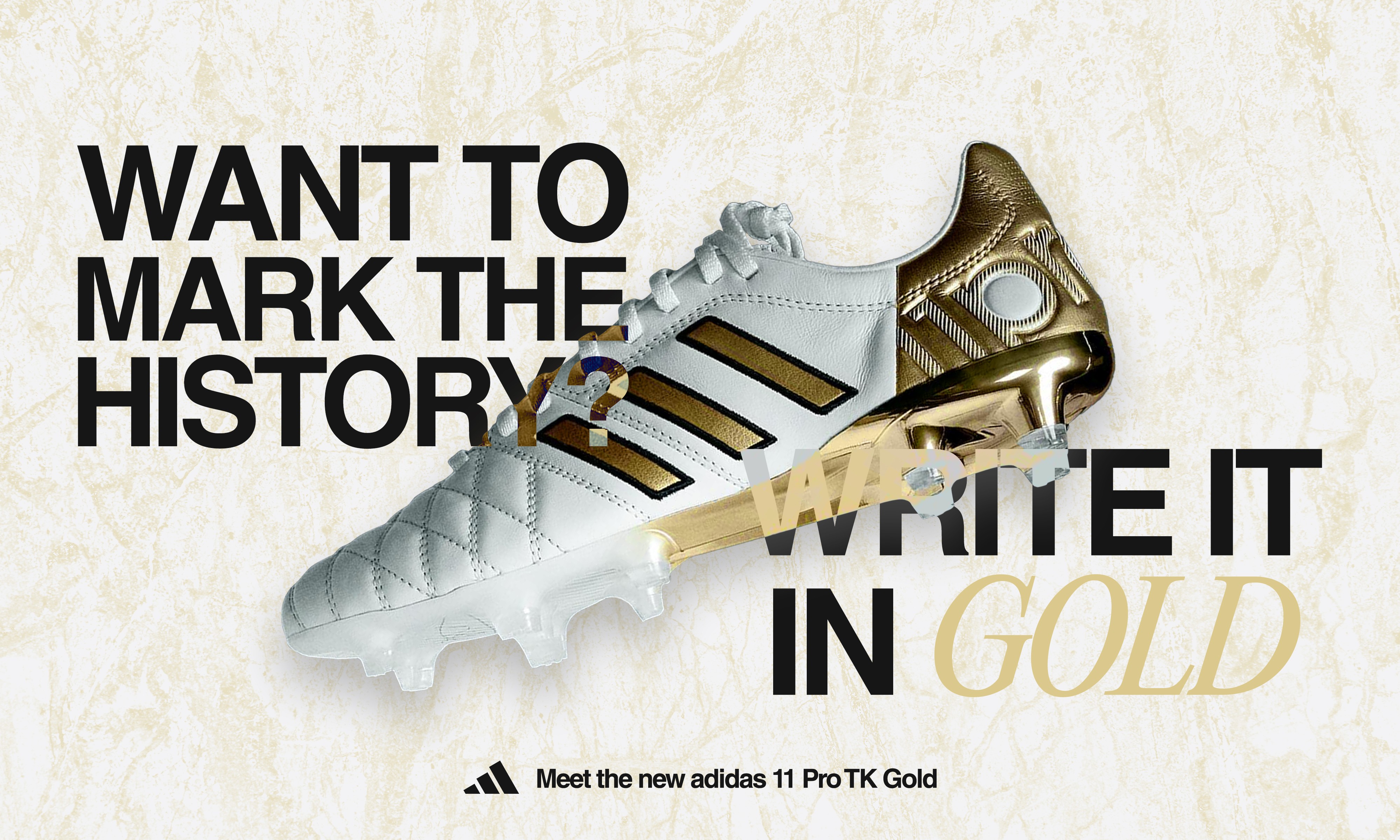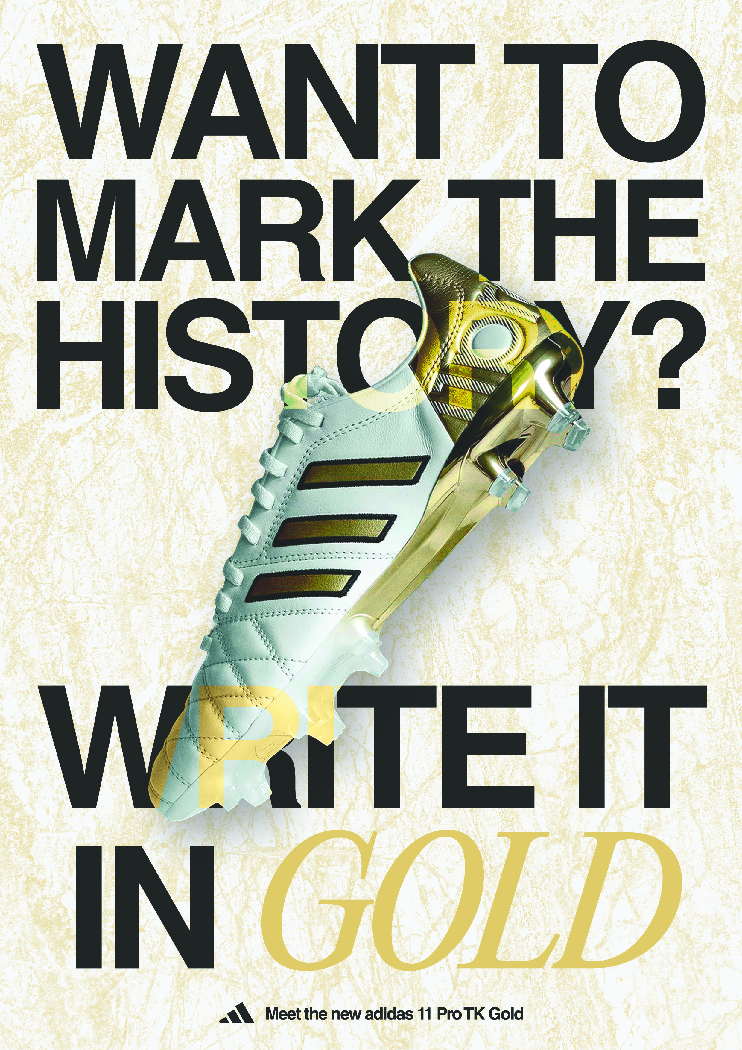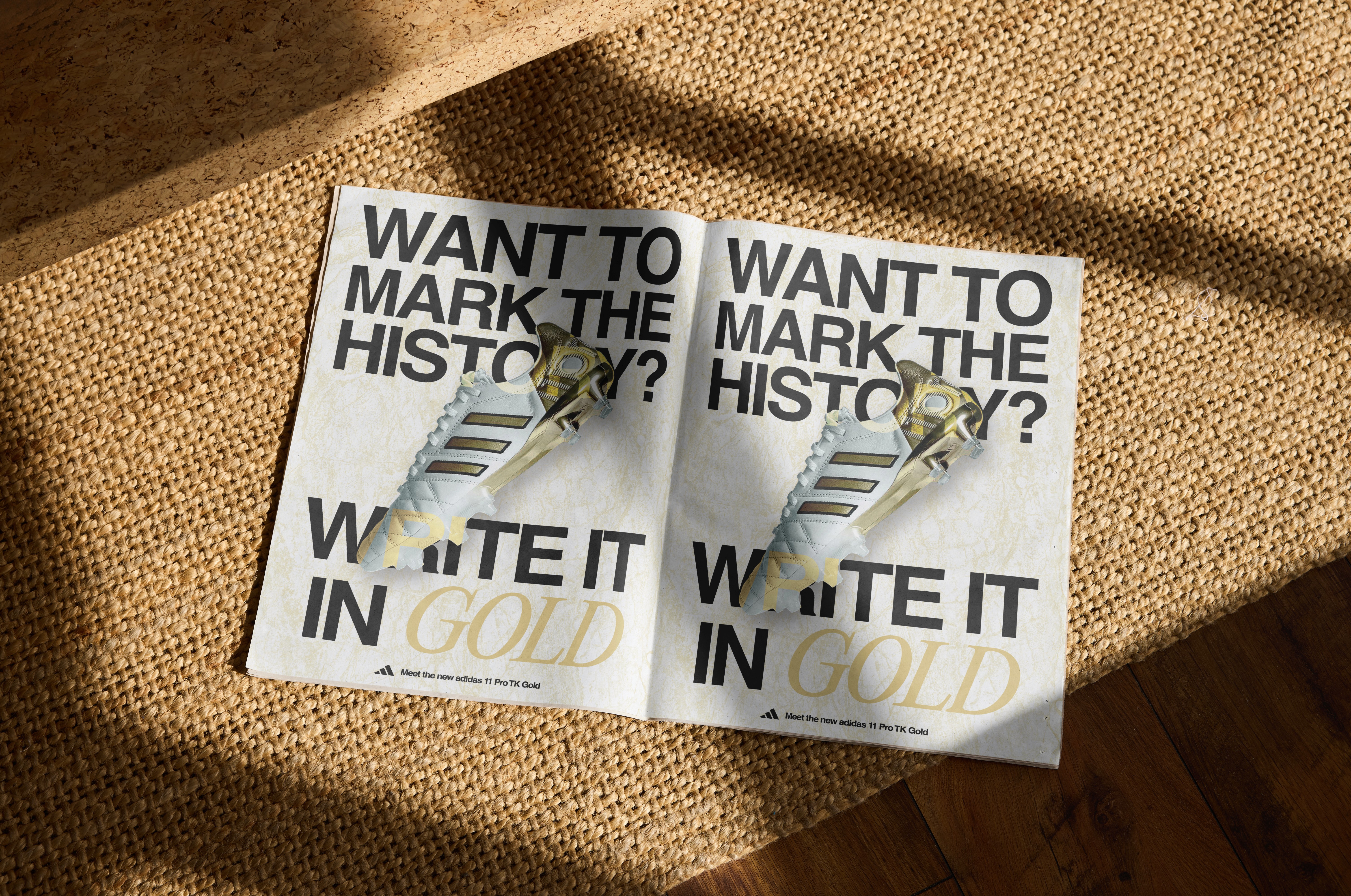 As part of a school project, I created a fictitious visual launch campaign for the new adidas 11 Pro TK Gold, a pair of cleats in tribute to the career of footballer Toni Kroos.