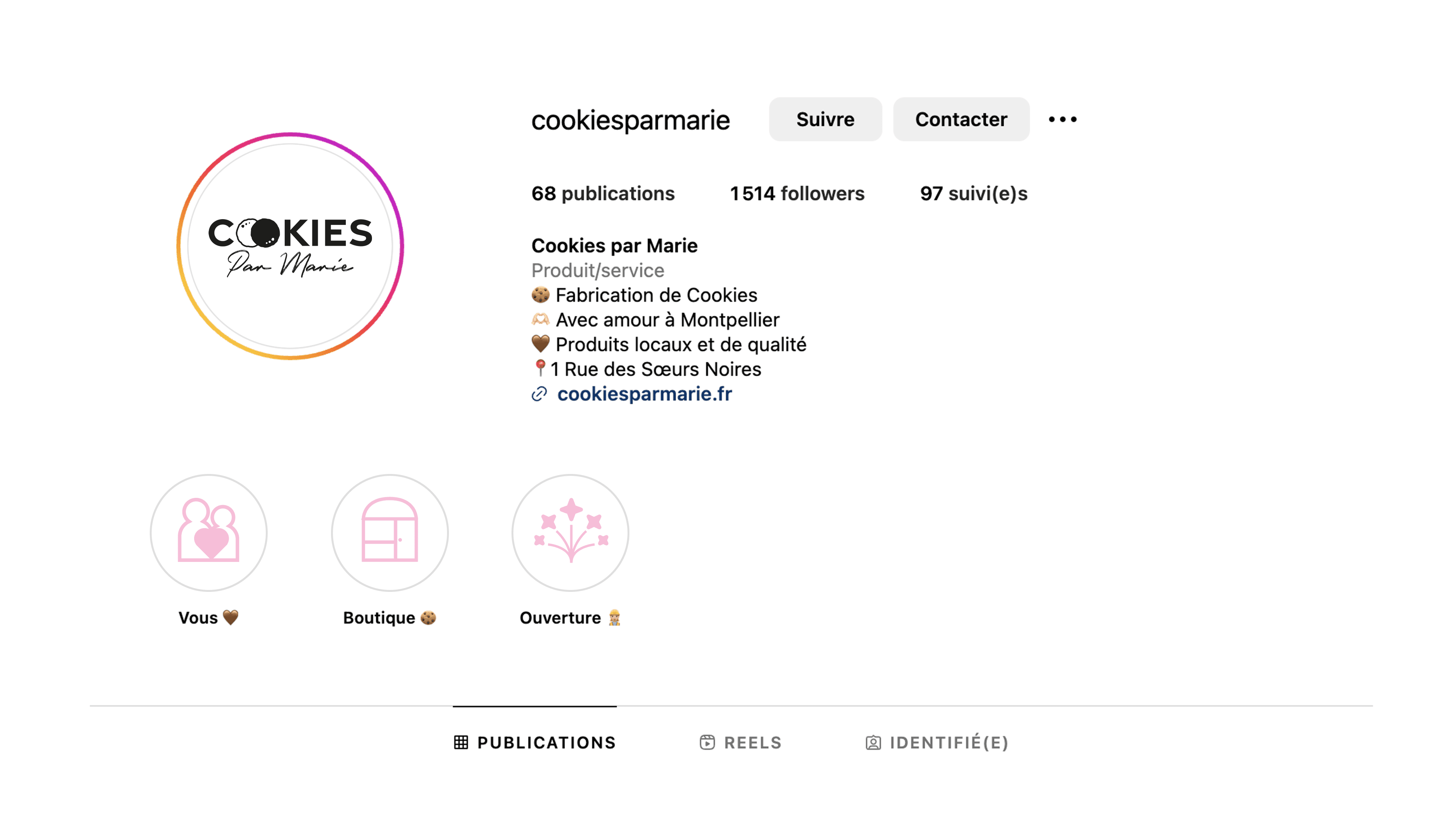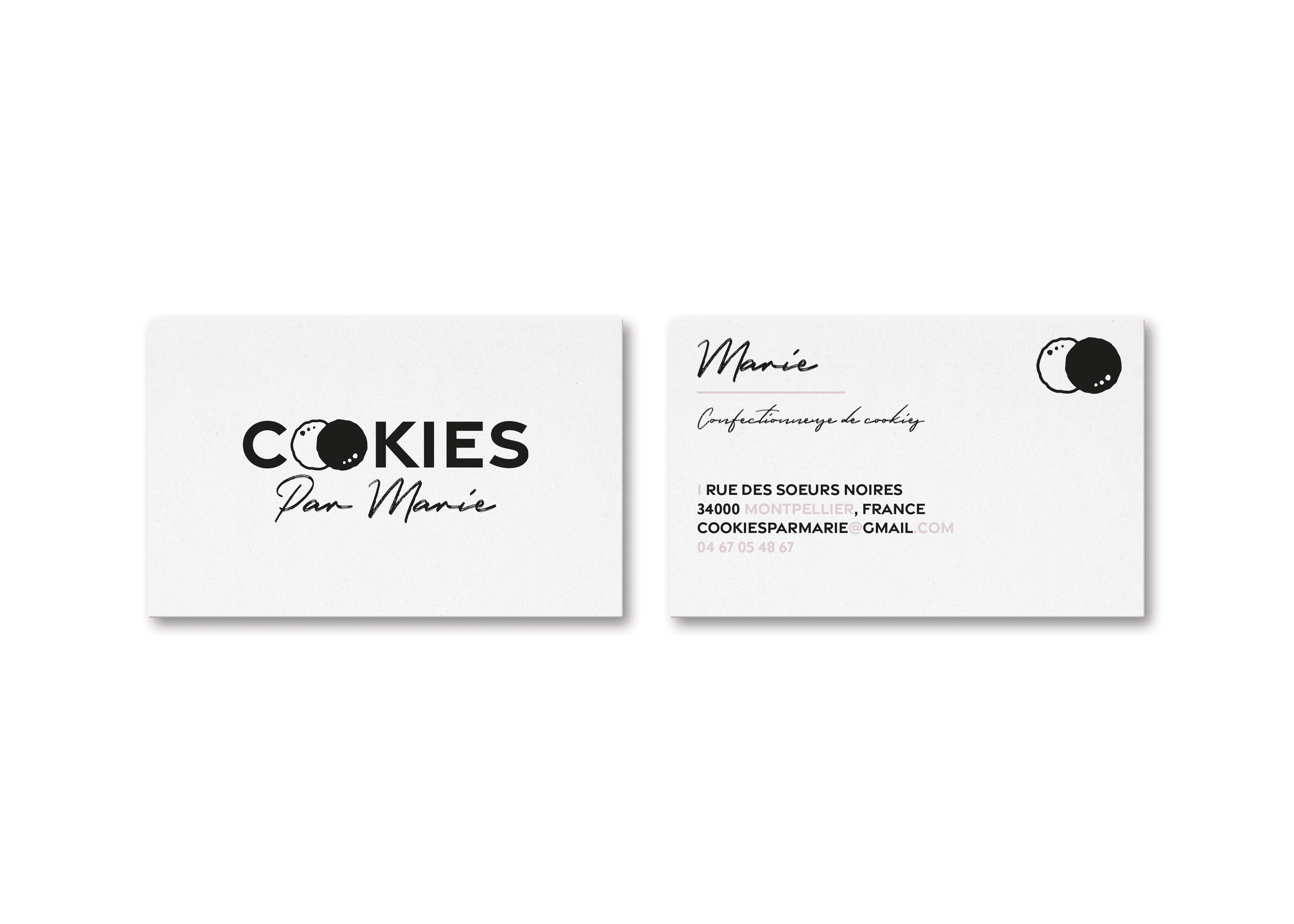 “Cookies par Marie” is a passionate and authentic Montpellier company specializing in the production and sale of cookies and shortbread. Above all, the company aims to convey a local, quality image. All its products come from the Occitanie region and are produced in a short circuit, guaranteeing customers an image of quality and product traceability. As part of a school project, I redefined the store's visual identity with a new logo, a refresh of the existing color palette, as well as stationery to help develop Marie's growing business.