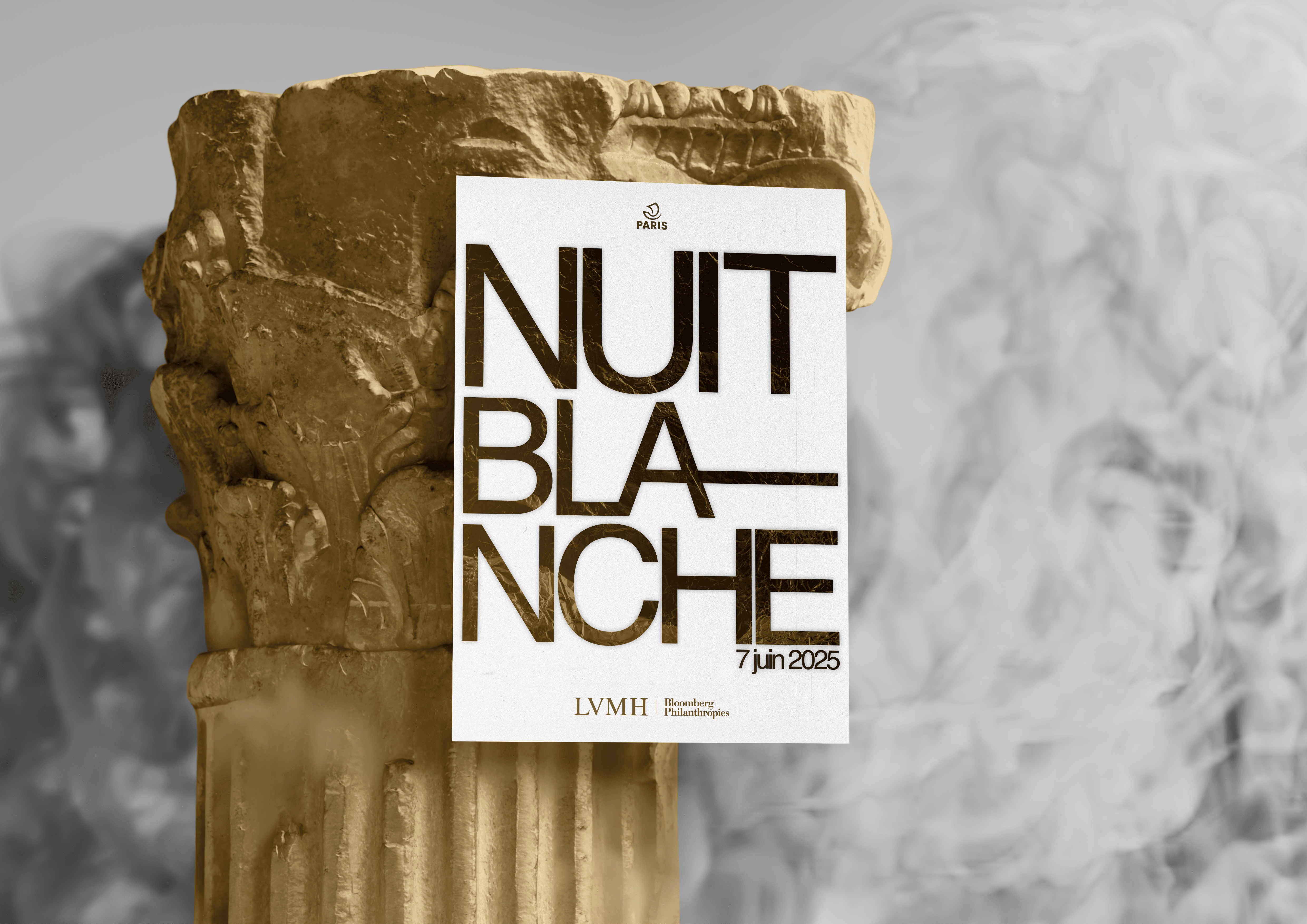 As part of a school project, I created a fictitious communication campaign for the Nuit Blanche 2025 event organized by the City of Paris. The campaign is built around a central visual that recalls the refined and precious side of the museums highlighted, the City of Paris, and the event's sponsors.